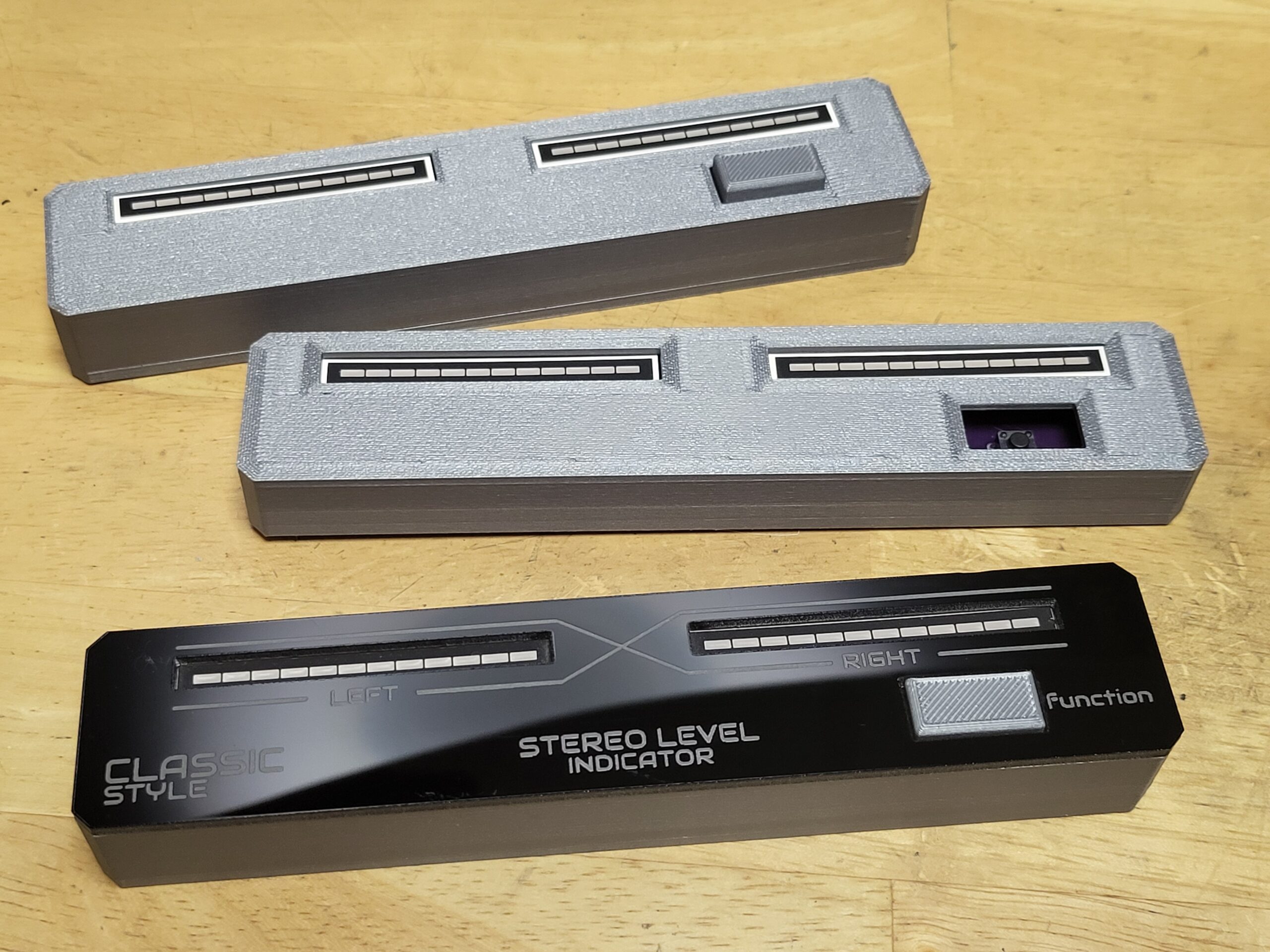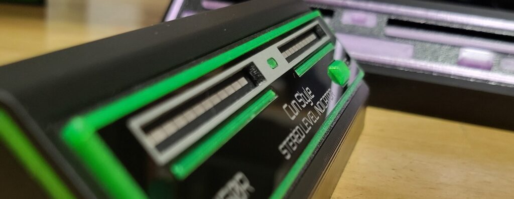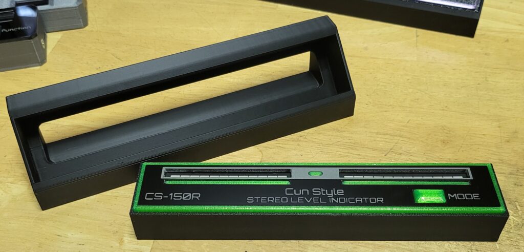 レベルメーターを加工無しで動作させるためのボックスです。12V DCと3.5mmオーディオジャックの入力を受け付けます。12V電源とレベルメーターを接続するためのケーブルを同梱する予定です。