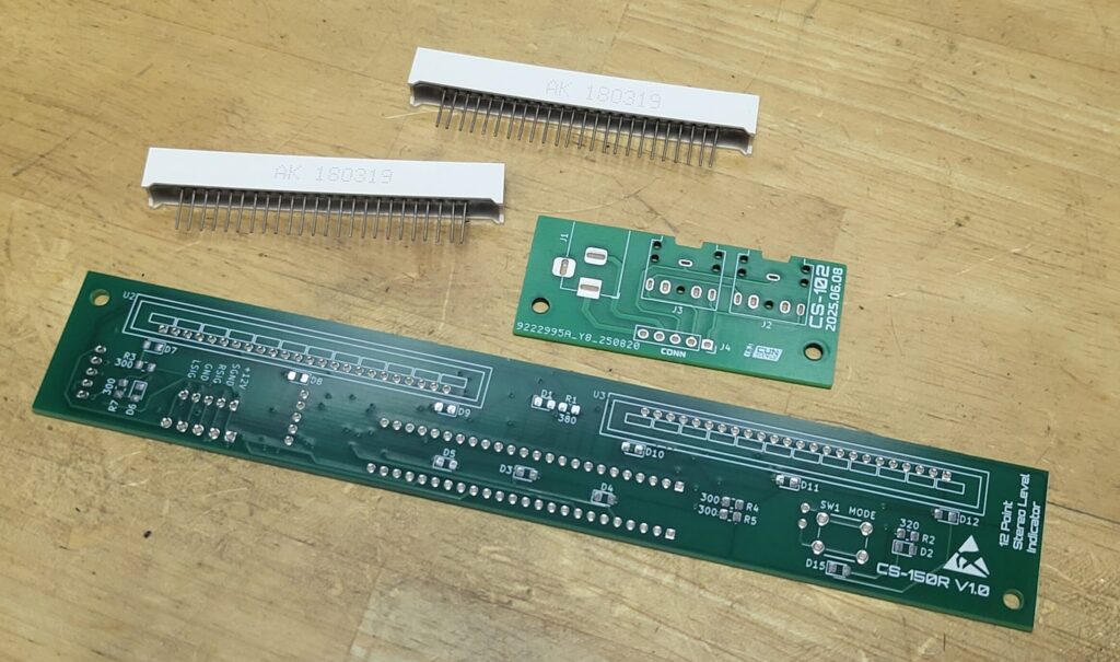 基板設計時にGX12コネクタを利用することを前提に設計していましたが、組み立ててからGX12コネクタ自体が大きいことに気づきました。レベルメーター本体の端子もJSTコネクタを利用しているので共通して利用できるようにJST PHへ仕様変更をします。